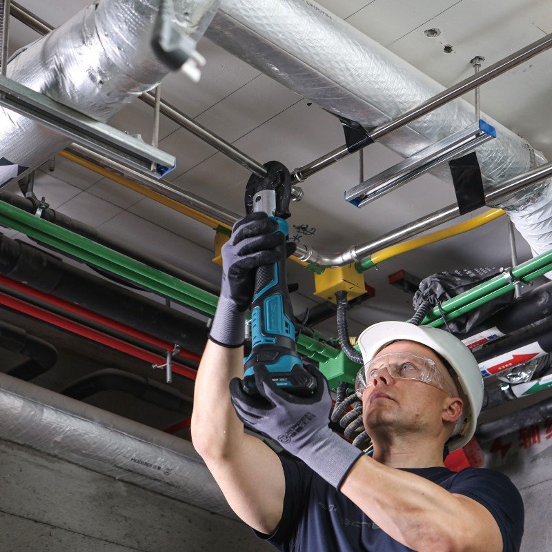 Das MP-1930 ist ein Presswerkzeug mit Inline-Griff. Es ist effizient und langlebig zum Verbinden von Kupfer-, Edelstahl- und PEX- und Mehrschichtrohren. In nur 3 Sekunden ist ein Presszyklus abgeschlossen. Geeignet für die meisten zugelassenen Backen anderer Systemhersteller auf dem Markt. Geeignet für 12–54 mm (1/2–2 Zoll) Edelstahlrohr und 12–108 mm (1/2–4 Zoll) für PEX-, Mehrschicht- und Kupferrohre.